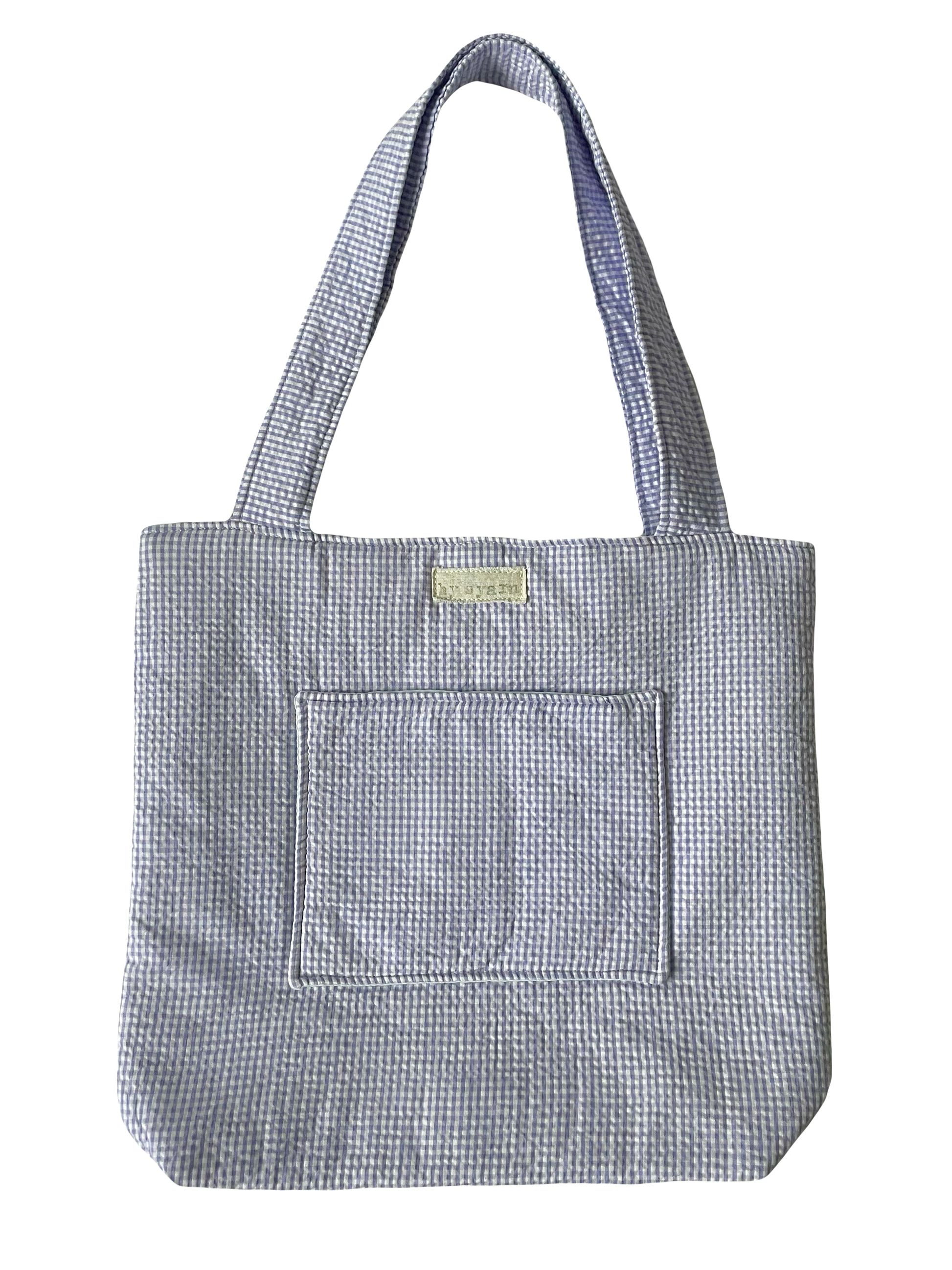 Made with vintage lilac gingham fabric and blue lining fabric.
