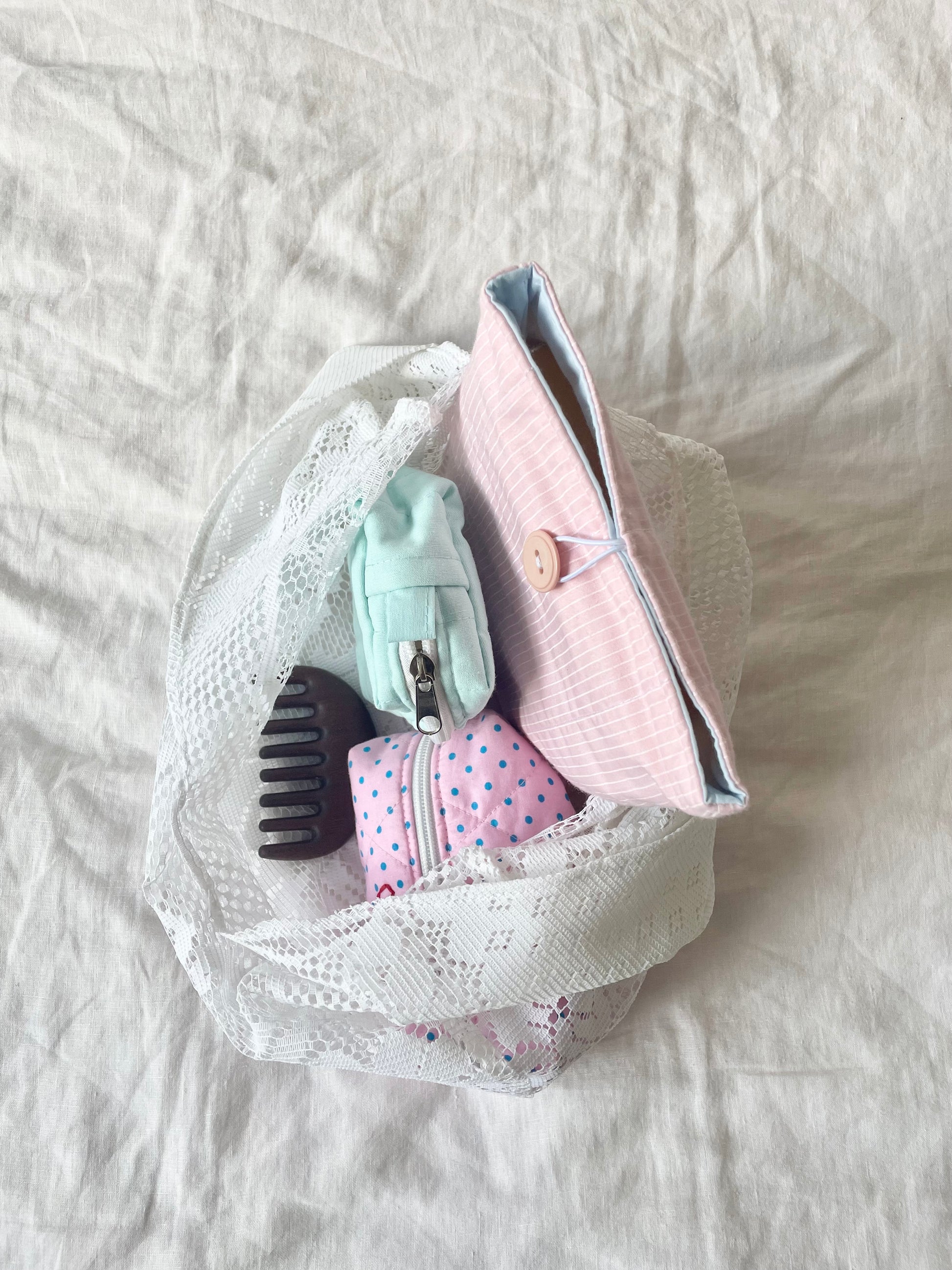 Made with a vintage tablecloth.