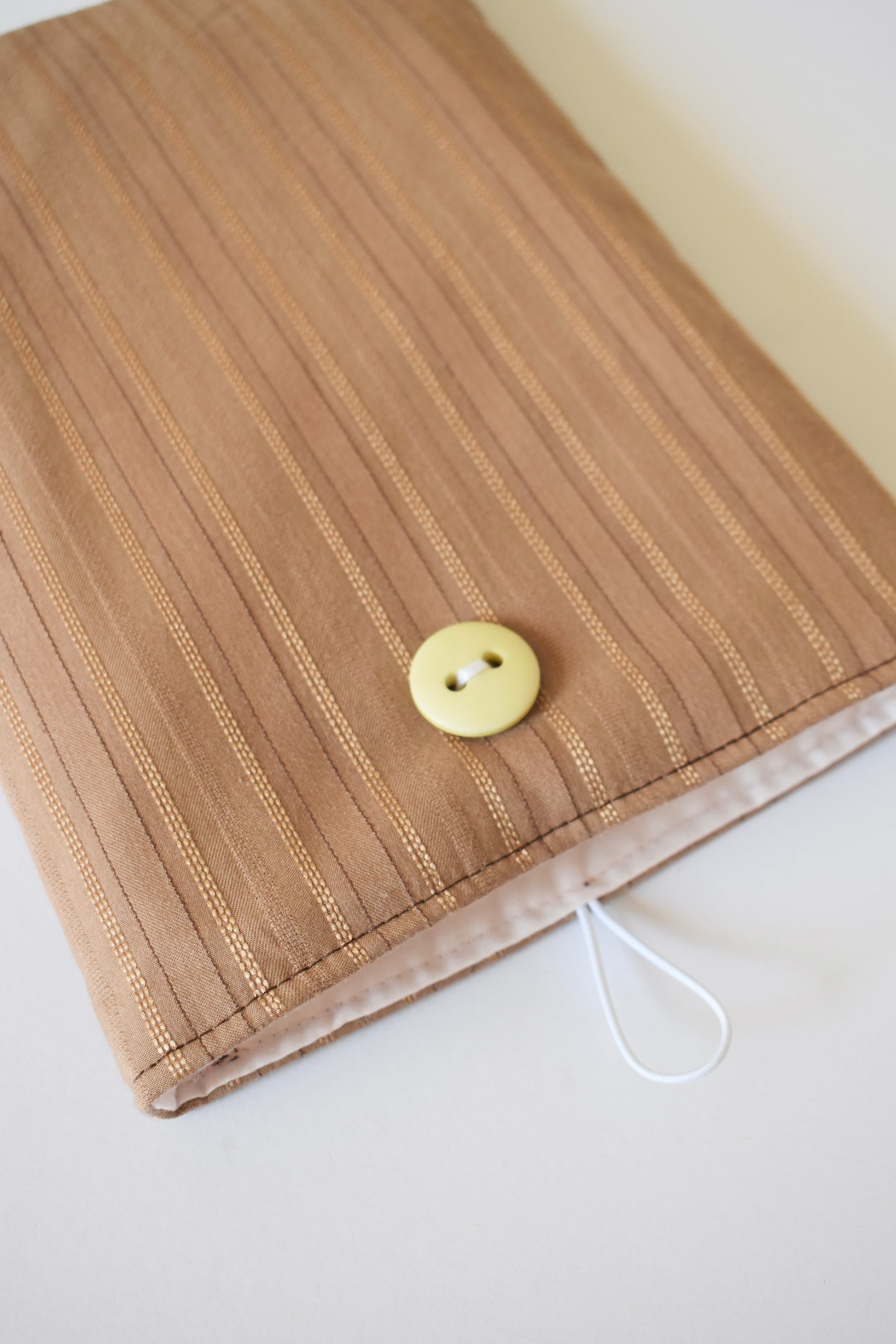 Made with up-cycled brown striped fabric and pink lining fabric.