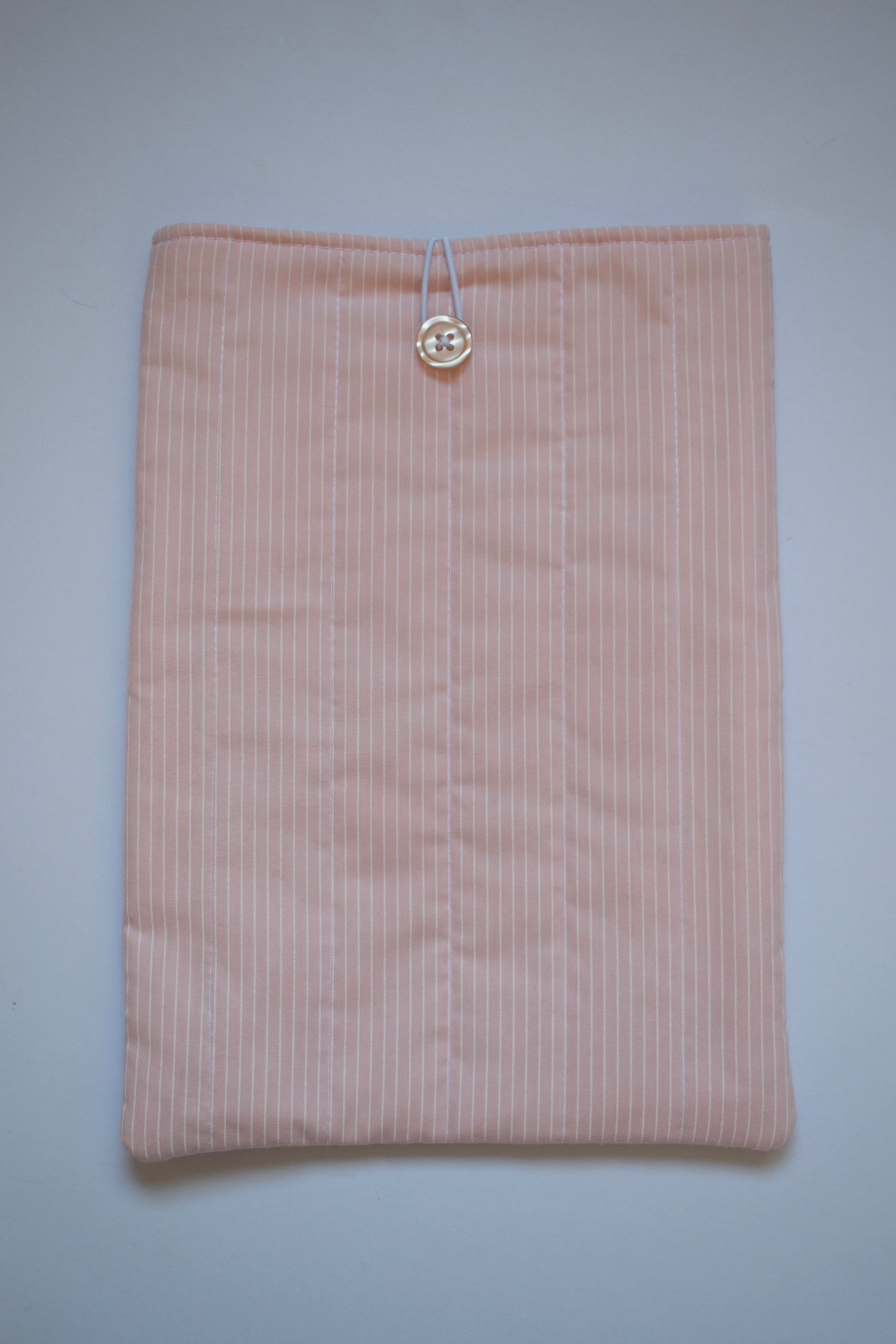 Made with up-cycled pink stripe fabric and pink lining fabric.